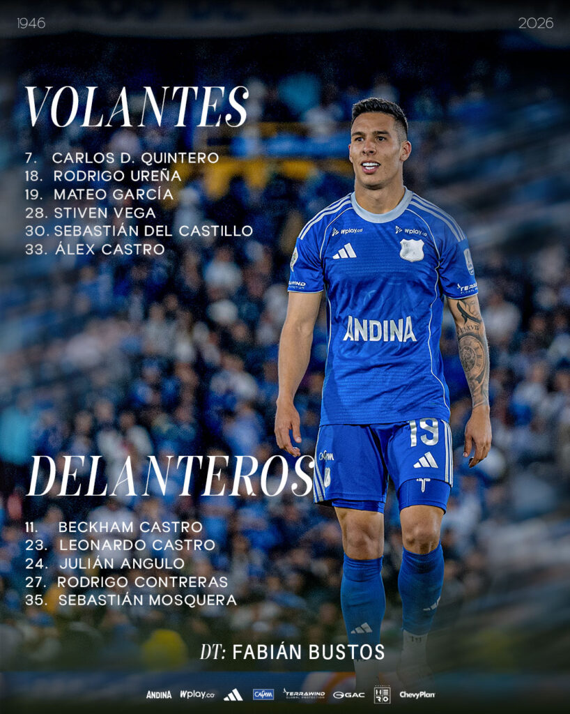 Millonarios reveló su convocatoria para el partido ante Atlético Nacional, que será por la fecha 12 de la Liga BetPlay 2026-1.