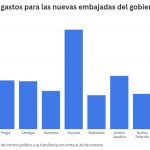 La embajada con mayores costos es la embajada en Riad, Arabia Saudita, con un presupuesto de 1,1 millones de dólares. Luego está la República Checa con 788 mil euros. Luego están las embajadas en Rumania (407.000 EUR), Barbados (447.123 USD), Senegal (390.455 USD), Etiopía (313.107 USD), Nueva Zelanda (254.439 USD), Guyana (247.830 USD) y Qatar (238.615 USD).