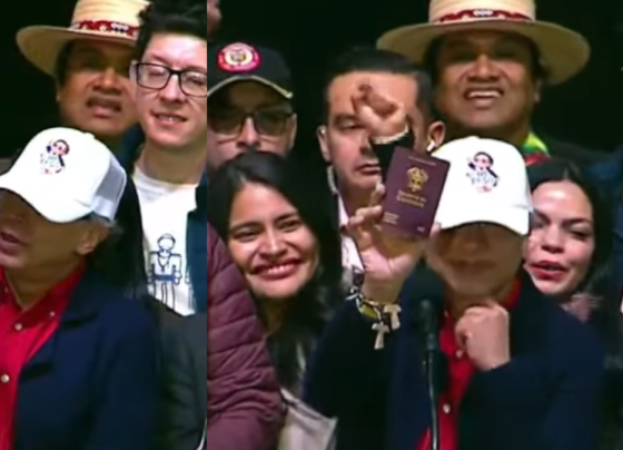 En medio de un discurso en la Plaza de Bolívar, en el centro de Bogotá, el jueves 19 de febrero,…