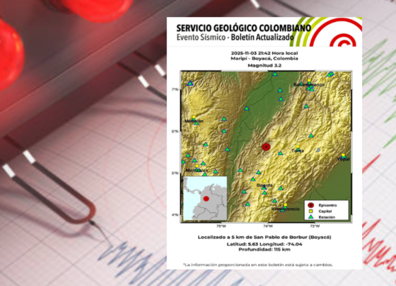 Así lo anunció el Servicio Geológico de Colombia (SGC) el lunes 3 de noviembre de 2025. Terremoto de magnitud 3,2…