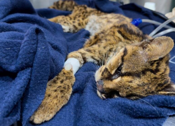 hembra adulta ocelote lanudo fue encontrado en estado crítico junto al sendero en ul Cerro de las Tres Cruces, v…